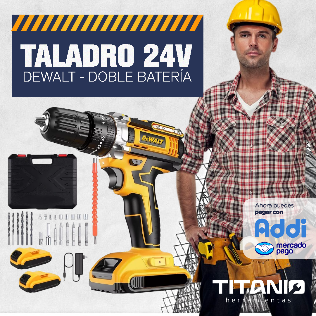 Taladro Inalámbrico Percutor 24 Voltios + 25 Piezas