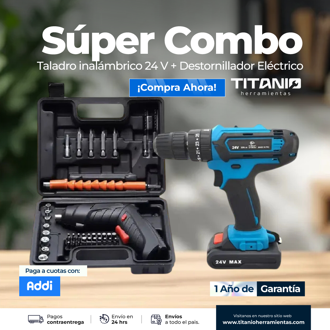 Combo Taladro 24V + Destornillador Eléctrico Inalámbrico