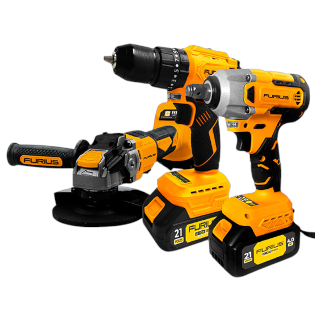 Combo Llave De Impacto + Taladro Percutor + Esmeriladora Angular Brushless 1/2" de 21V Inalámbricos